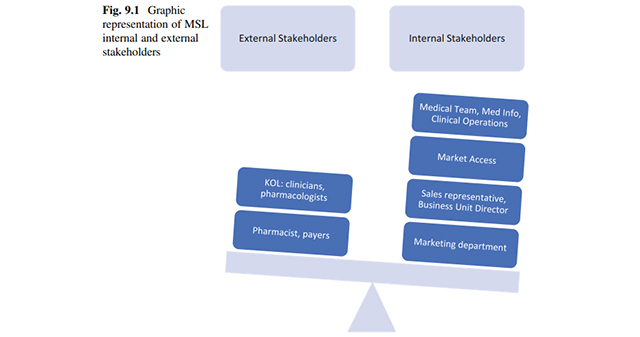 我们通常将利益相关者称为MSL与之互动的人。值得注意的是,MSL与内部利益相关者(即同一家公司的同事)的合作非常密切,而这些利益相关者实际上比外部利益相关者更加多样化。如果我们从战略角度考虑MSL作为外部医疗环境与公司之间“桥梁”的特殊作用,这是有道理的。因此,他/她必须与不同的内部部门联络,即使他/她的大部分时间都花在现场。